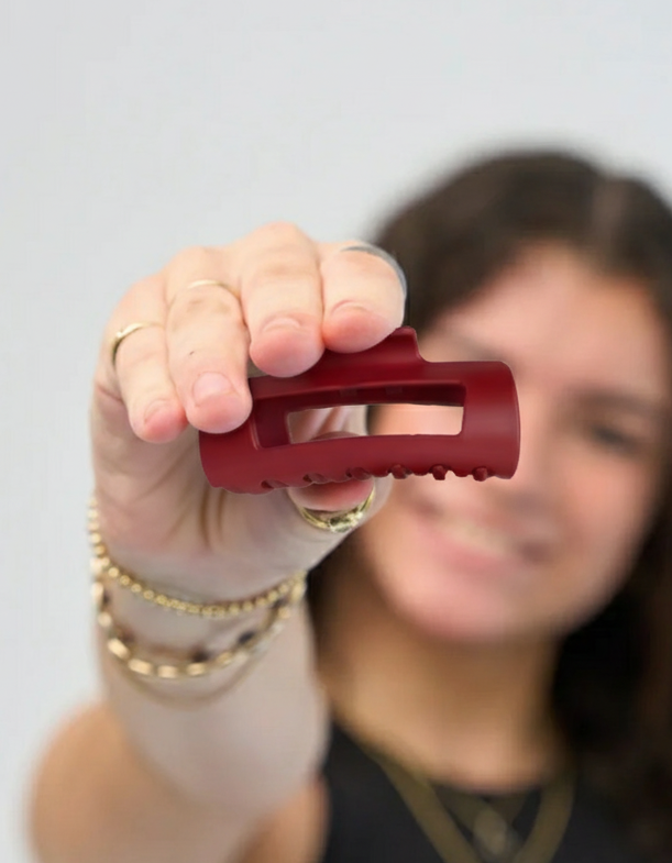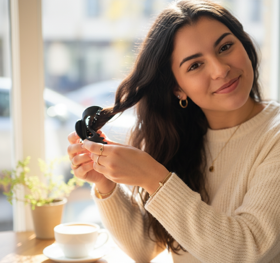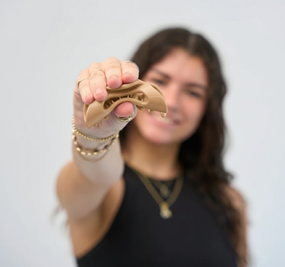 Naša sponka je navrhnutá tak, aby skvele fungovala na väčšine typov vlasov – od jemných po husté, od rovných po kučeravé. Ak máte veľmi dlhé alebo extrémne objemné vlasy, súčasná veľkosť sa vám môže zdať trochu malá na dokonalý účes. Aktívne však vyvíjame menšie a väčšie veľkosti, aby sme vyhoveli ešte väčšiemu počtu štýlov a textúr – zostaňte naladení!